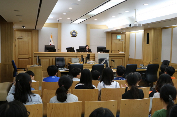 ÇлýµéÀº ¹ý¿ø¿¡ µµÂøÇÏ¿© ´ëȸÀǽǿ¡¼ ¹ýÀÇ Á¾·ù¿Í ¹ý¿øÀÇ À§°è, ÀçÆÇÀÇ Á¾·ù ¹× ÀçÆÇ ÀýÂ÷ µî¿¡ ´ëÇØ ¹è¿î ÈÄ ½ÇÁ¦ Çü»ç ¹ýÁ¤ÀÇ ÀçÆÇÀ» ¹æÃ»ÇÏ¿´´Ù. ÀÌÈÄ ºó ¹ýÁ¤À¸·Î À̵¿ÇÏ¿© ÆÇ»ç¿Í 40ºÐÁ¤µµ Æò¼Ò ±Ã±ÝÇß´ø °Í¿¡ ´ëÇØ ÁúÀÇÀÀ´ä ½Ã°£À» °¡Áö°í ¹ýº¹À» ÀÔ°í ±â³äÃÔ¿µµµ ÇÏ¿´´Ù.