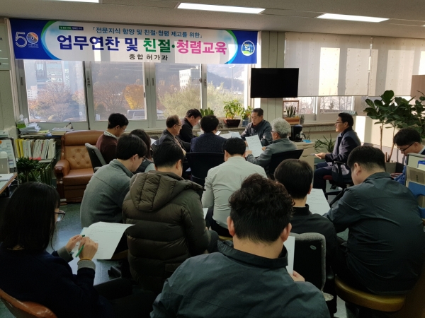 Á¾ÇÕÇã°¡°ú(°úÀå Àüȯ¿±)¿¡¼´Â 11¿ù 21ÀÏ(¸ñ) ¾÷¹«½ÃÀÛ Àü Á÷¿øÀÇ Àü¹®Áö½Ä ÇÔ¾çÀ» À§ÇÑ ¾÷¹«¿¬Âù ¹× Ä£Àý°ú û·ÅÁ¦°í¸¦ À§ÇÑ ±³À°À» ½Ç½ÃÇÏ¿´´Ù.