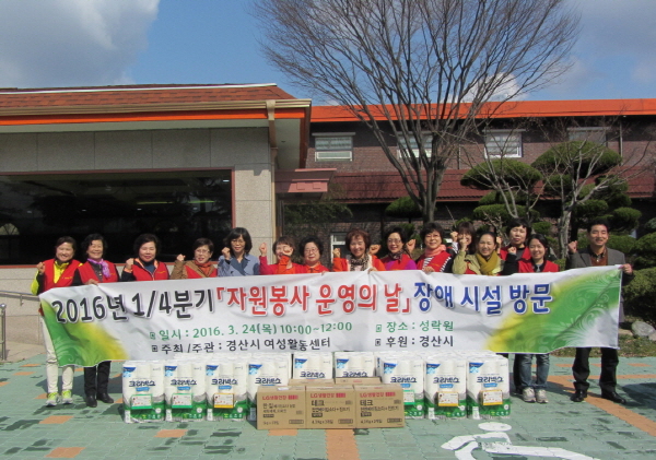 °æ»ê½Ã¿©¼ºÀÚ¿øÈ°µ¿¼¾ÅÍ(ȸÀå ÇѼö°æ) ÀÚ¿øºÀ»çÀÚ 20¿©¸íÀº 1/4ºÐ±â ÀÚ¿øºÀ»ç¿î¿µÀÇ ³¯À» ¸Â¾Æ 24ÀÏ ½Åõµ¿ ¼ÒÀç Àå¾Ö¾Æµ¿½Ã¼³ÀÎ ¼º¶ô¿øÀ» ã¾Æ°¡ Àå¾Ö¾Æµ¿µéÀ» ´ë»óÀ¸·Î ÈÞÁö, ¼¼Á¦ µîÀÇ ¹°Ç°Àü´Þ ¹× ¿ø³»¿Ü û¼Ò ¹× º¸À°³îÀÌ º¸Á¶¸¦ ÇÏ´Â µî ´Ùä·Î¿î ºÀ»çȰµ¿À» ÆîÃÆ´Ù.